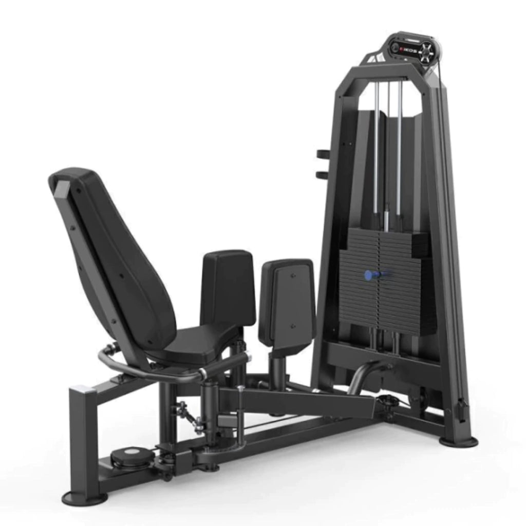 Equipamento profissional, para salas de ginástica em condomínios e academias. O principal objetivo da Cadeira Adutora e Abdutora Kikos Pro Titanium T7475 LINHA DUAL - Torre 110kg é potencializar a mobilidade dos membros inferiores, além de ajudar na coordenação motora e fortalecer os músculos do quadril, da coxa e da região lombar. Na adução ativa de forma completa os músculos adutores da coxa e na abdução, os músculos glúteo médio e glúteo mínimo. Em função da variação adequada de carga e de direção dos vetores de força ao longo do curso do movimento a ativação muscular é intensa com grande sensação de trabalho muscular e ocorre alivio das sobrecargas articulares.
